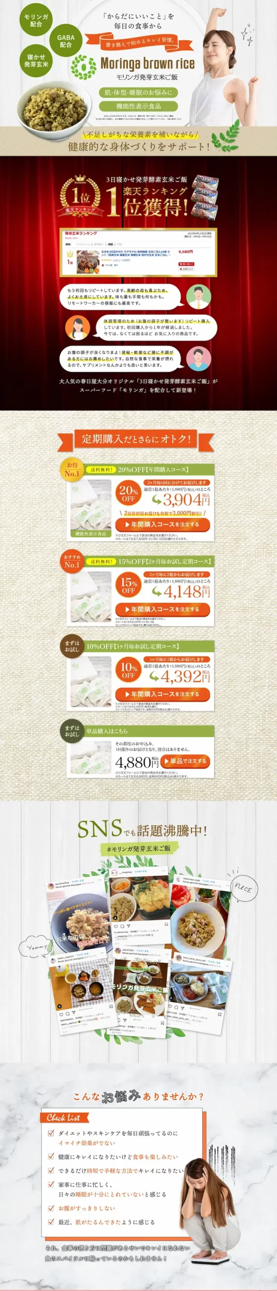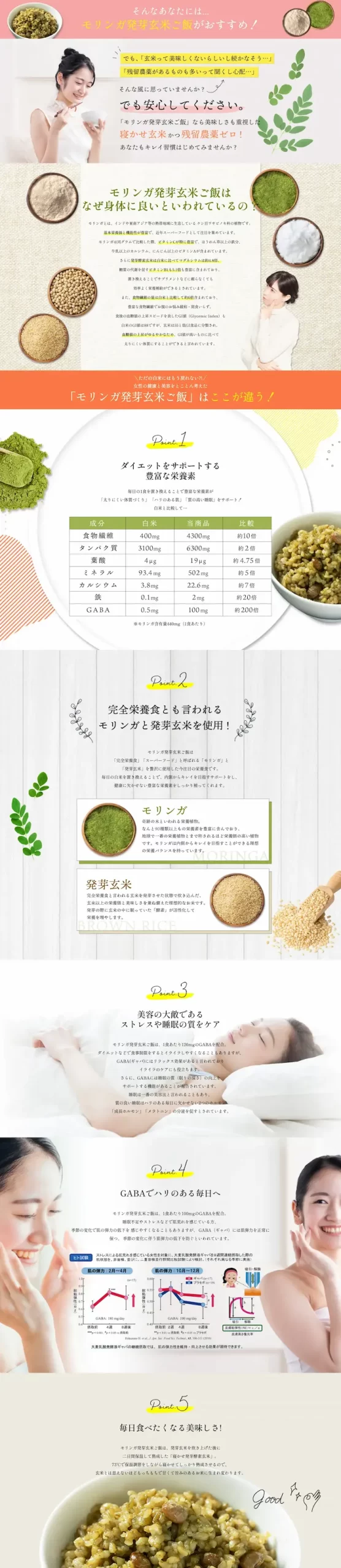 モリンガ発芽玄米ご飯の販売促進LPデザイン